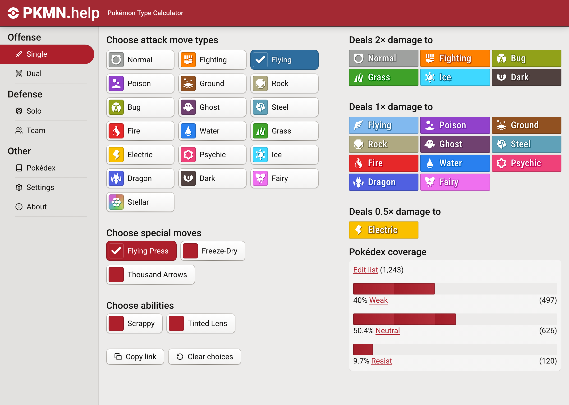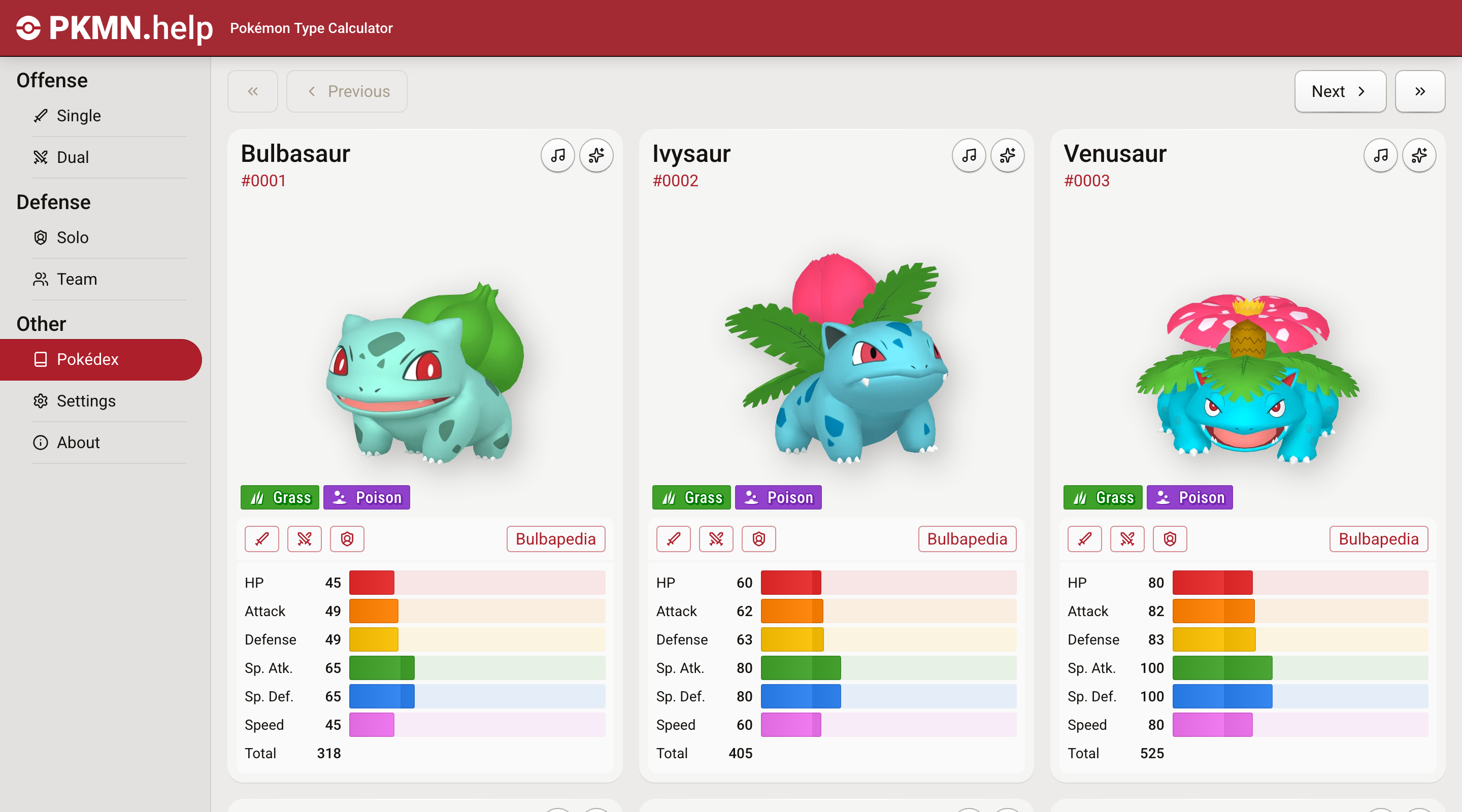 Pokédex entries now have separate buttons for Dual Offense and Single Offense calculator links