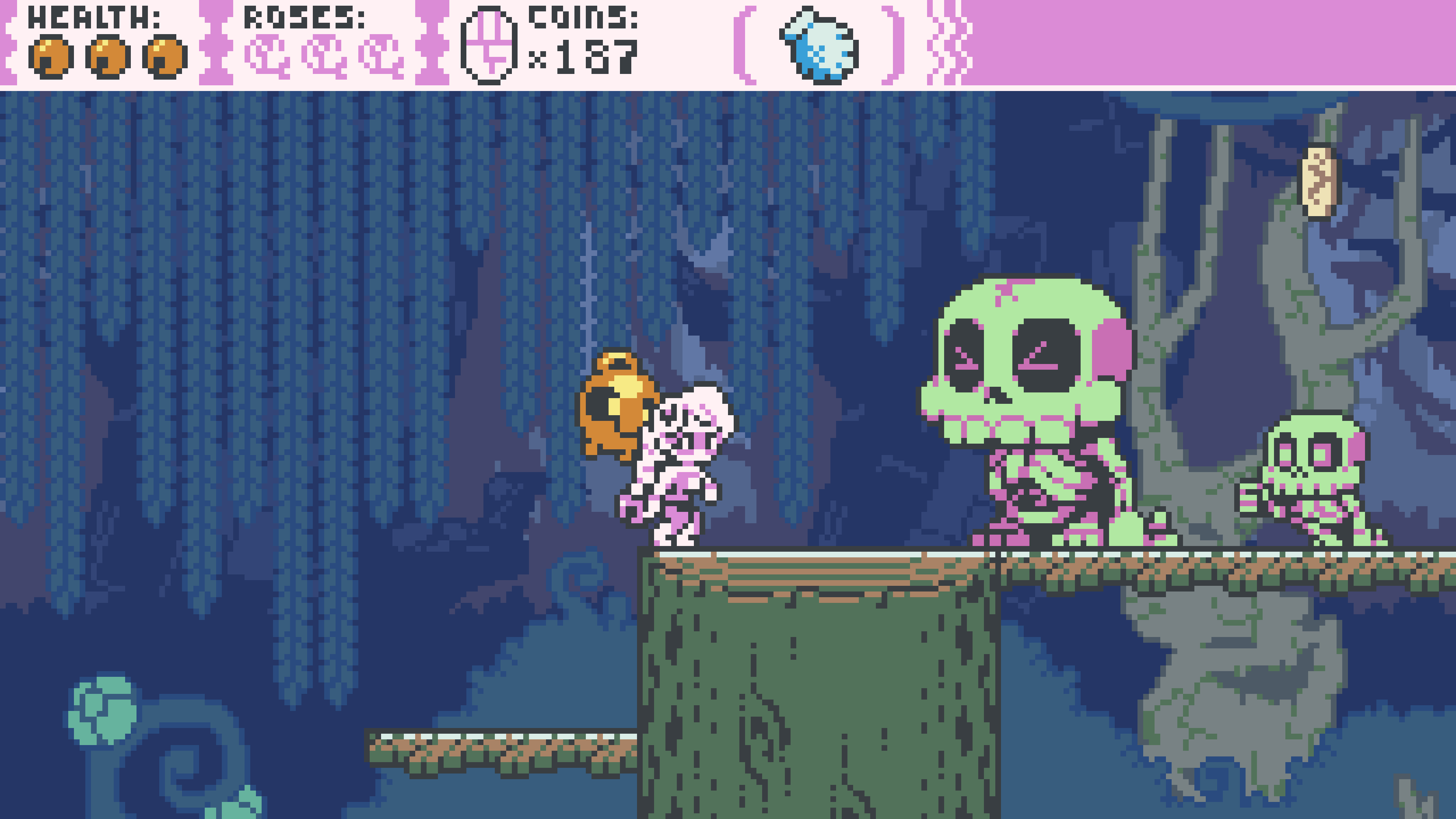 Also like the 3D Mario games, Belle has a few different jump commands: regular, high jump, and long jump. Because this is ostenibly a two button game (plus dash), this can get a little confusing to pull off the long jump reliably depending on your controller in the heat of the moment.